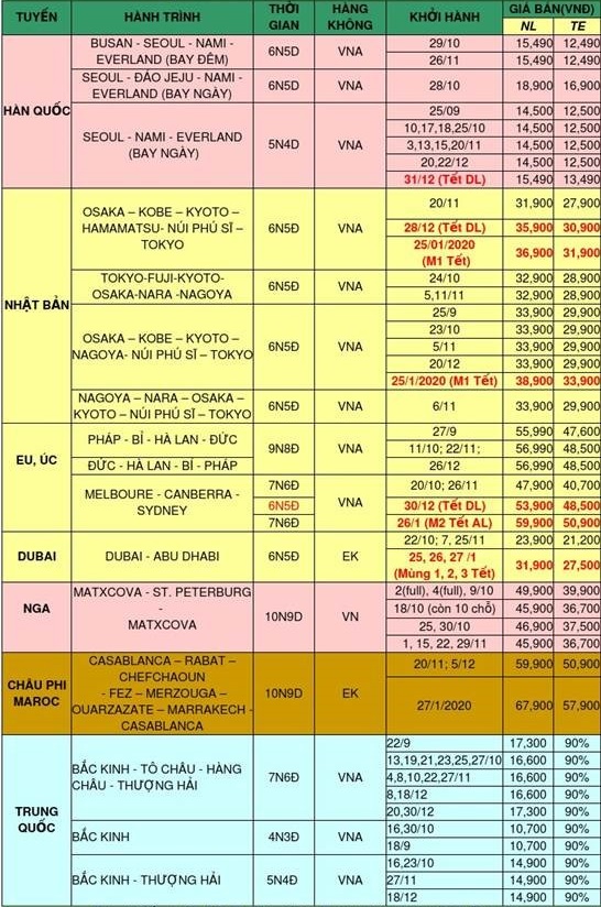 Để đáp ứng nhu cầu du lịch trong quý IV/2019 và đón chào Tết Dương lịch và Tết Âm lịch 2020, A2Z liên tục update lịch khởi hành đến Quý khách hàng.