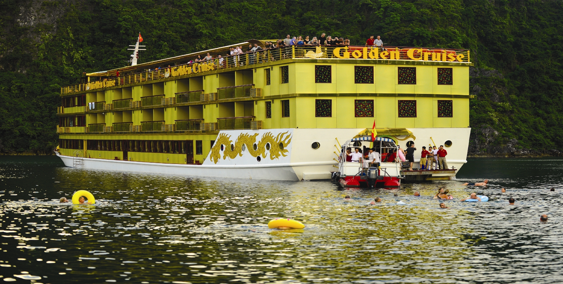 Là tàu 5 sao đầu tiên trên vịnh có thang máy và bể bơi trên boong tàu