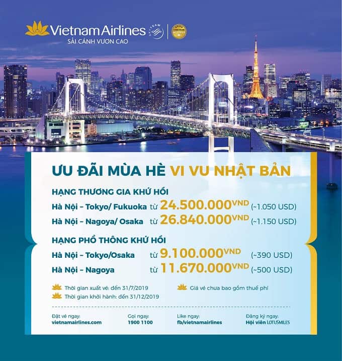 A2Z trân trọng thông báo Giá ưu đãi đi Nhật của hãng hàng không Vietnam Airlines, cụ thể như sau: