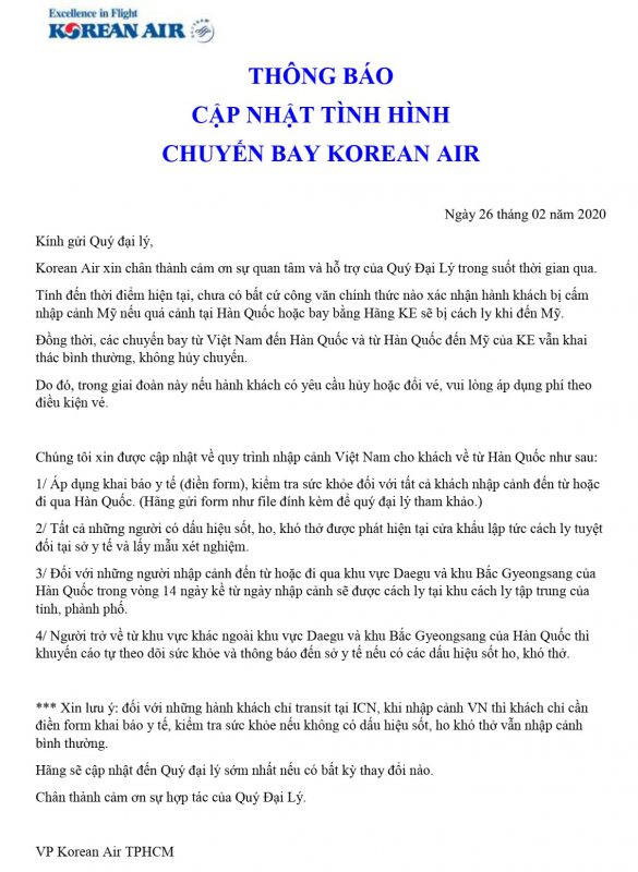 Bản tin du lịch, Vé máy bay quốc tế KOREAN AIR// CẬP NHẬT TÌNH TRẠNG CHUYẾN BAY _ UPDATED 26FEB20 Posted on 28 Tháng hai, 2020 by admin a2z 28 Th2 Cùng A2Z đến Thái Lan tham dự TẾT TÉ NƯỚC – Giá chỉ từ 6,49 triệu Cập nhật mới nhất những địa điểm du lịch an toàn mùa dịch Covid-19