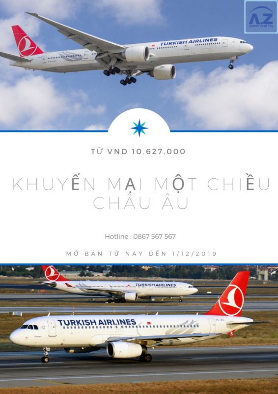 A2Z trân trọng thông báo giá vé 1 chiều từ Hà Nội và TP Hồ Chí Minh tới 10 Thành phố châu Âu của Turkish Airlines: TALLINN, BERLIN, FRANKFURT, HELSINKI, VIENNA, SOFIA, VILNIUS, PARIS, WARSAW, BUDAPEST. Chỉ từ 10,672,000 VNĐ
